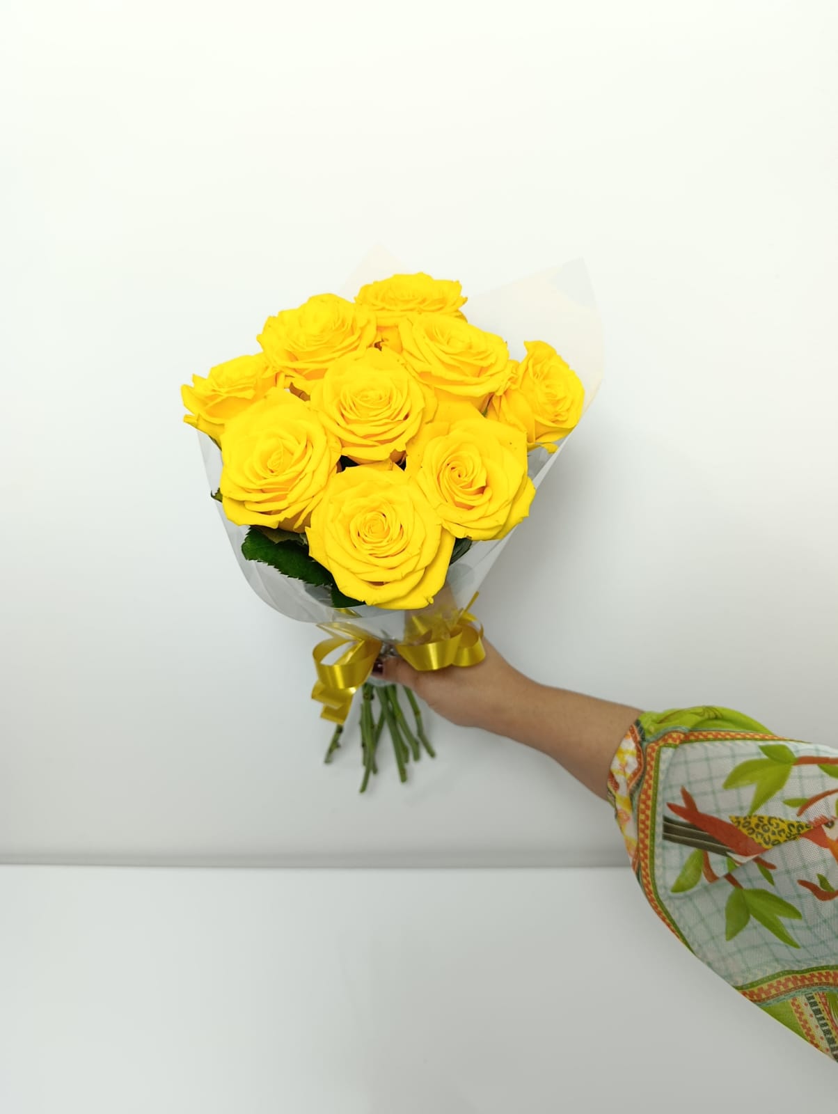 ☀️💛 O Buquê de 9 (Nove) Rosas Amarelas – Beleza Natural é sinônimo de luz, alegria e amizade verdadeira. Cada rosa amarela transmite energias positivas, carinho e gratidão, tornando este buquê um presente que aquece corações. 🌼✨