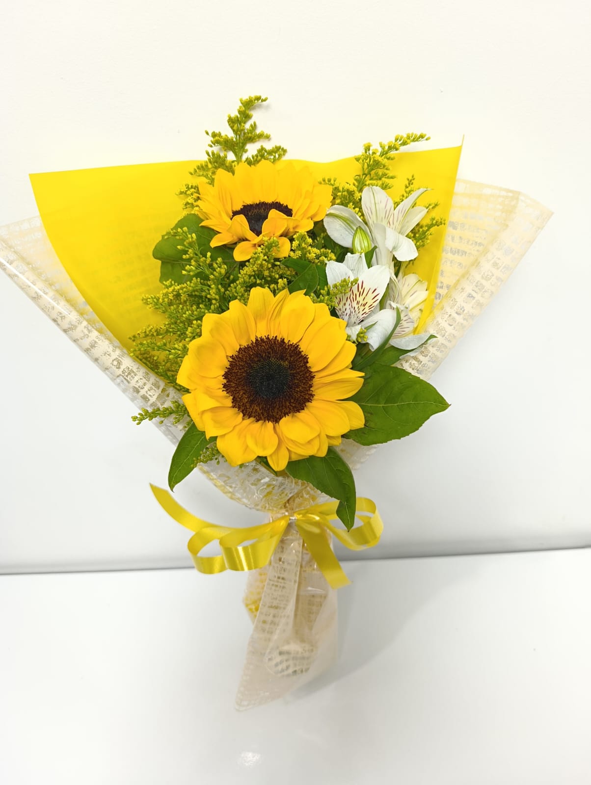 🌻✨ O Buquê Ramalhete de 2 (dois) Girassóis – Encanto Solar transmite alegria, afeto e energia positiva. Montado com girassóis frescos, folhagens naturais e acabamento em papel celofane personalizado com laço especial, é perfeito para iluminar o dia de quem você ama.