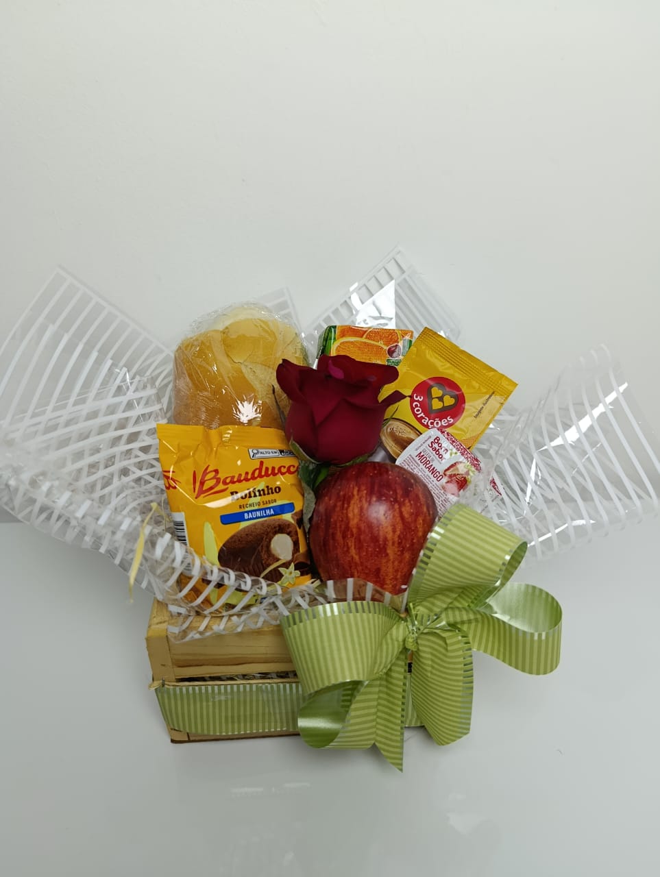 Transforme o começo do dia em um momento especial com a Cesta Mimo Um Simples Bom Dia 2, uma combinação perfeita de sabores e delicadeza. Montada com produtos selecionados e uma linda rosa vermelha natural, essa cesta é ideal para demonstrar carinho, amor e gratidão de forma simples, porém inesquecível.
