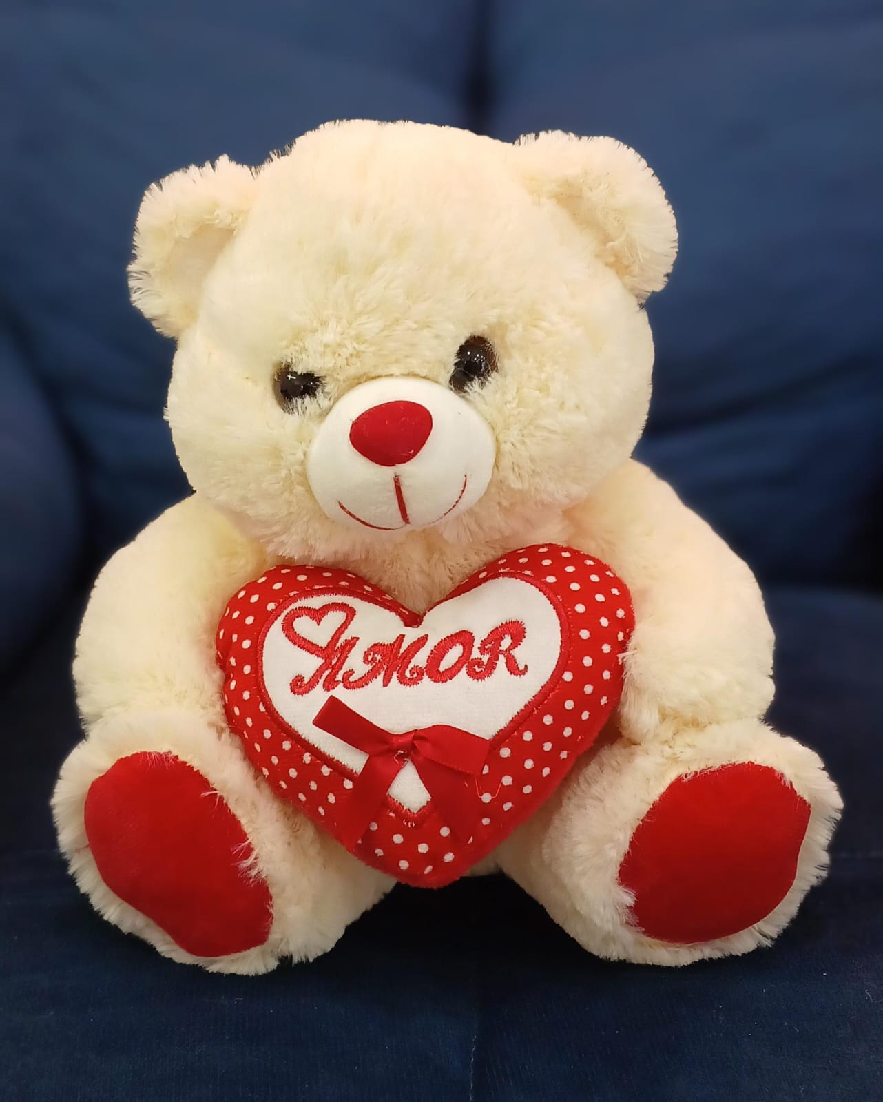 O Urso Branco com um Coração "Amor" é a escolha ideal para demonstrar carinho e afeto de maneira única. Com 25 cm de altura, este ursinho encantador é delicadamente bordado com a palavra "Amor" em um coração vermelho, tornando-o um presente especial para qualquer ocasião.