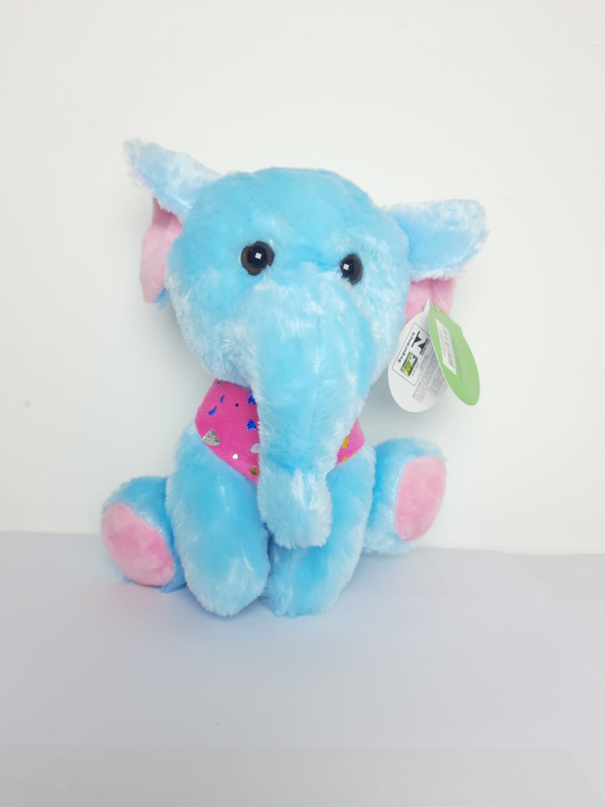 Este encantador elefante azul de 20 cm é pura fofura e romantismo! Ele usa uma linda bandana rosa estampada com delicados corações, mostrando que tem um coração cheio de amor para dar.