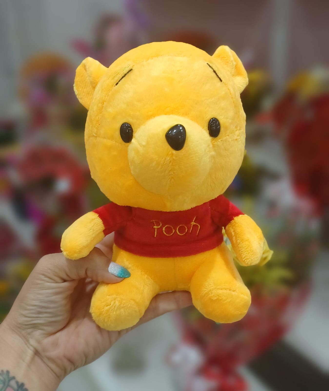 O Ursinho Pooh de Pelúcia com 18 cm traz todo o encanto e a doçura do personagem mais amado do Bosque dos Cem Acres. Com expressão carinhosa e traje clássico, esta pelúcia é uma réplica adorável do Pooh, perfeito para presentear ou decorar ambientes com um toque de ternura.