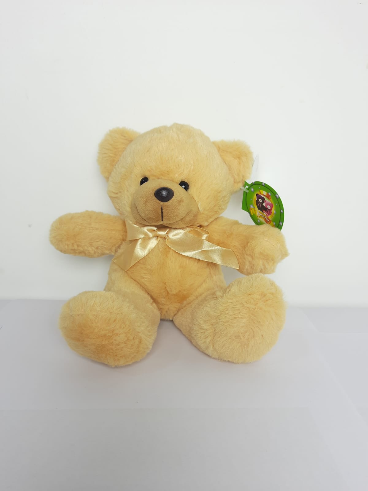 Este adorável urso caramelo de 17 cm é pura doçura e fofura! Com seu elegante laço caramelo no pescoço, ele é o presente ideal para todos que amam pelúcias aconchegantes.